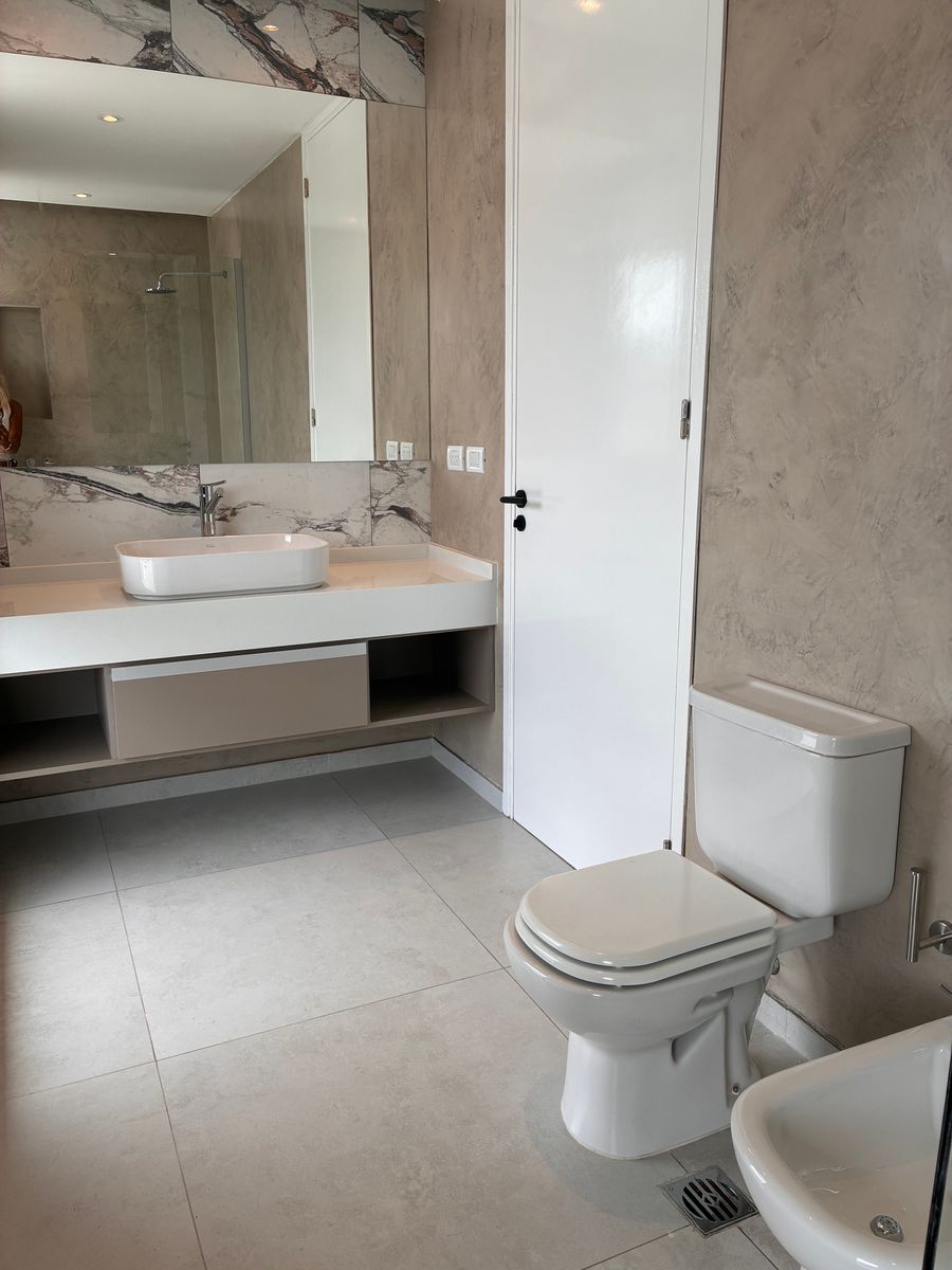 En planta baja cuenta con un amplio living comedor integrado a la cocina, generando un espacio moderno y funcional. Dispone de lavadero independiente, toilette de recepción y una cómoda galería con asador y baño, ideal para reuniones y disfrute al aire libre. Además, posee baulera y cochera techada para dos autos, también con espacio de guardado.
