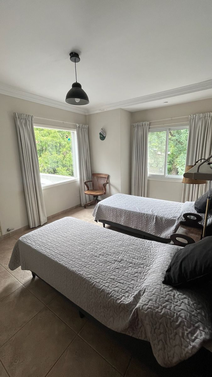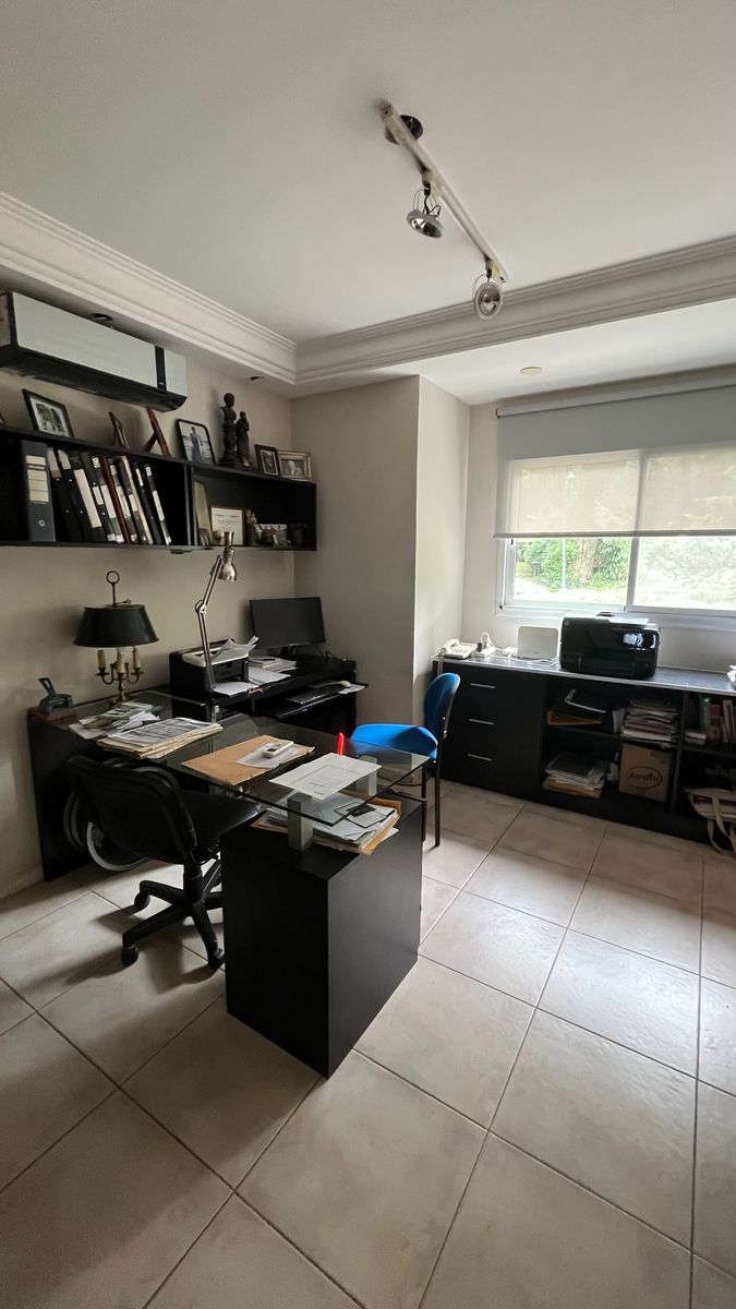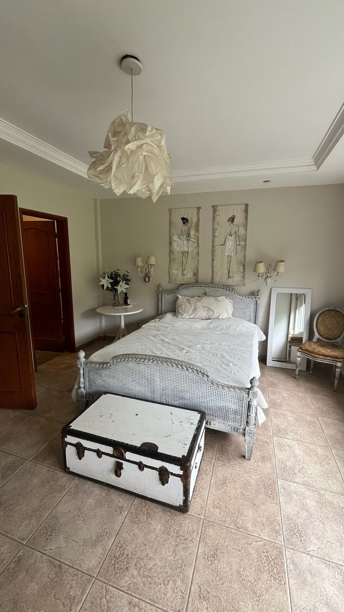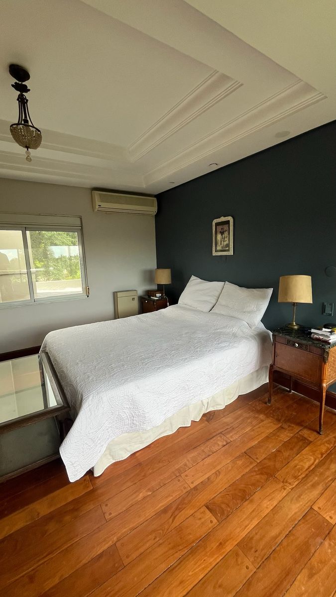 La propiedad cuenta en planta alta con seis dormitorios, tres de ellos en suite. La suite principal se destaca por su amplitud, vestidor, baño completo y un espacio privado de escritorio con vistas abiertas al jardín y la ciudad, generando un verdadero ámbito de intimidad y confort.